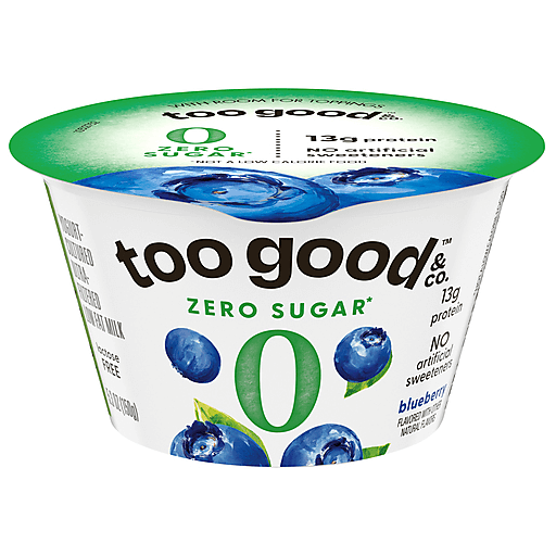 Doing good is about to become a whole lot more delicious with a Too Good & Co. Zero Sugar* Blueberry Yogurt-Cultured Ultra-Filtered Low Fat Milk Product. Too Good & Co. is raising the bar on goodness with Zero Sugar*, creamy taste and ingredients you feel good about. Every 5.3 oz serving of this zero sugar* yogurt-cultured dairy product is made with low fat ultra-filtered milk for deliciously creamy goodness in every spoonful with 70 calories, 0g of total sugar and 13g of protein per serving. Protein is an essential nutrient we need in our diets, and Too Good & Co. cups are great-tasting, convenient options for adding complete protein goodness every day. Plus, it has no lactose and no artificial sweeteners. Too Good & Co. Zero Sugar yogurt-cultured ultra filtered low fat milk makes a great addition to your breakfast and a delightful afternoon snack. Grab a pack for on the go snacks or pack a snack cup for a tasty pick-me-up whenever you need it. *Not a low calorie food.